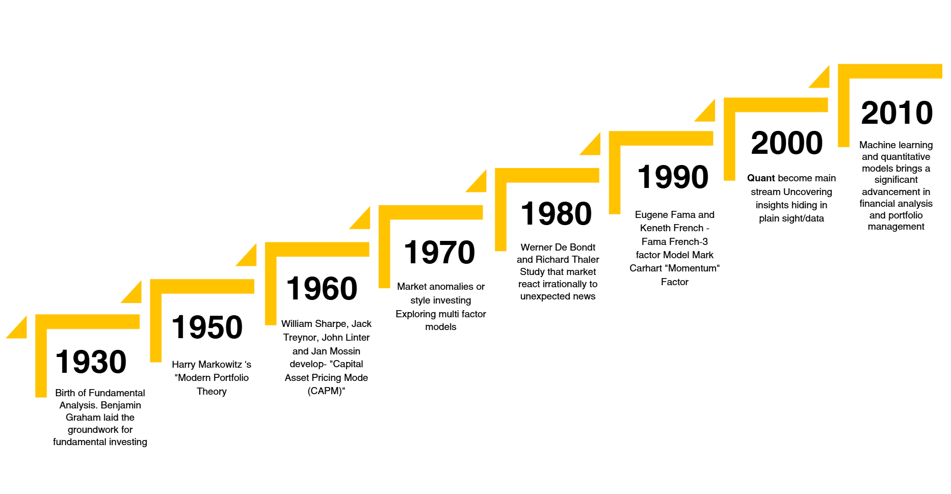 Long-term equity investment began in 1930s with the introduction of fundamental investing, pioneered by Benjamin Graham, emphasizing the intrinsic value and detailed financial analysis. By the 2000s, advancements in computing and data ushered in quantitative investing, utilizing algorithms, statistical models, and machine learning for precise, data-driven investment decision-making