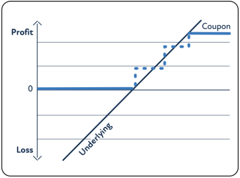 Combines both features, providing coupons if the asset’s price stays above a barrier, but no coupons if it falls below.
