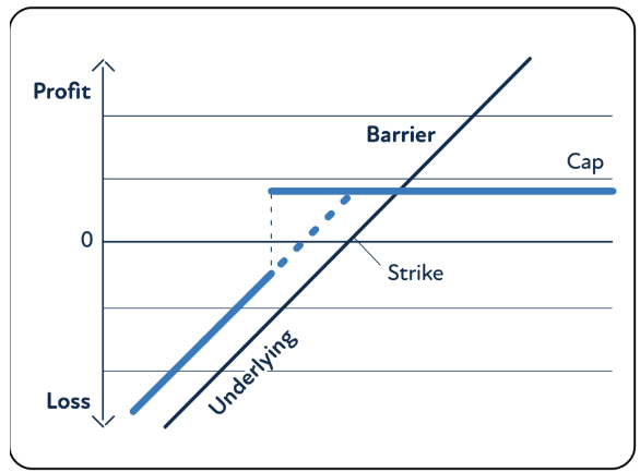- If the underlying is above the strike at maturity or the barrier remains untouched, the investor receives the maximum redemption amount (cap).