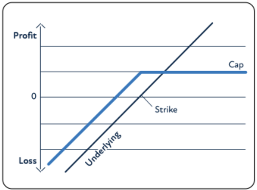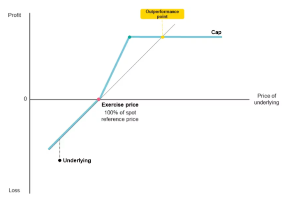 - If the underlying is above the strike at maturity, the maximum redemption amount (cap) is received.