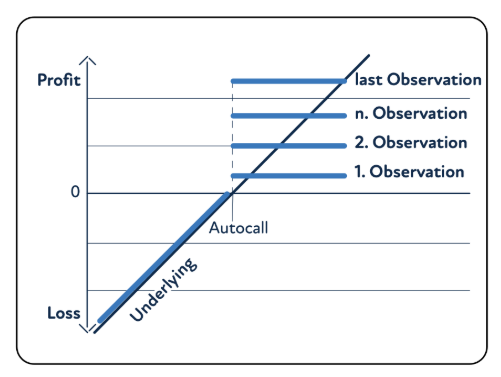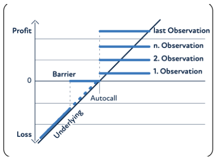- Often includes an autocall feature: if the underlying exceeds the autocall trigger on the observation date, the nominal amount plus any coupon is repaid early.
