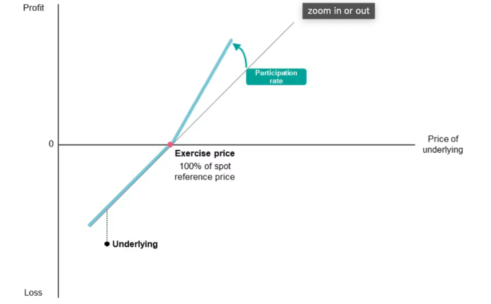 - Participation: Opportunity to benefit from price increases above a strike level.